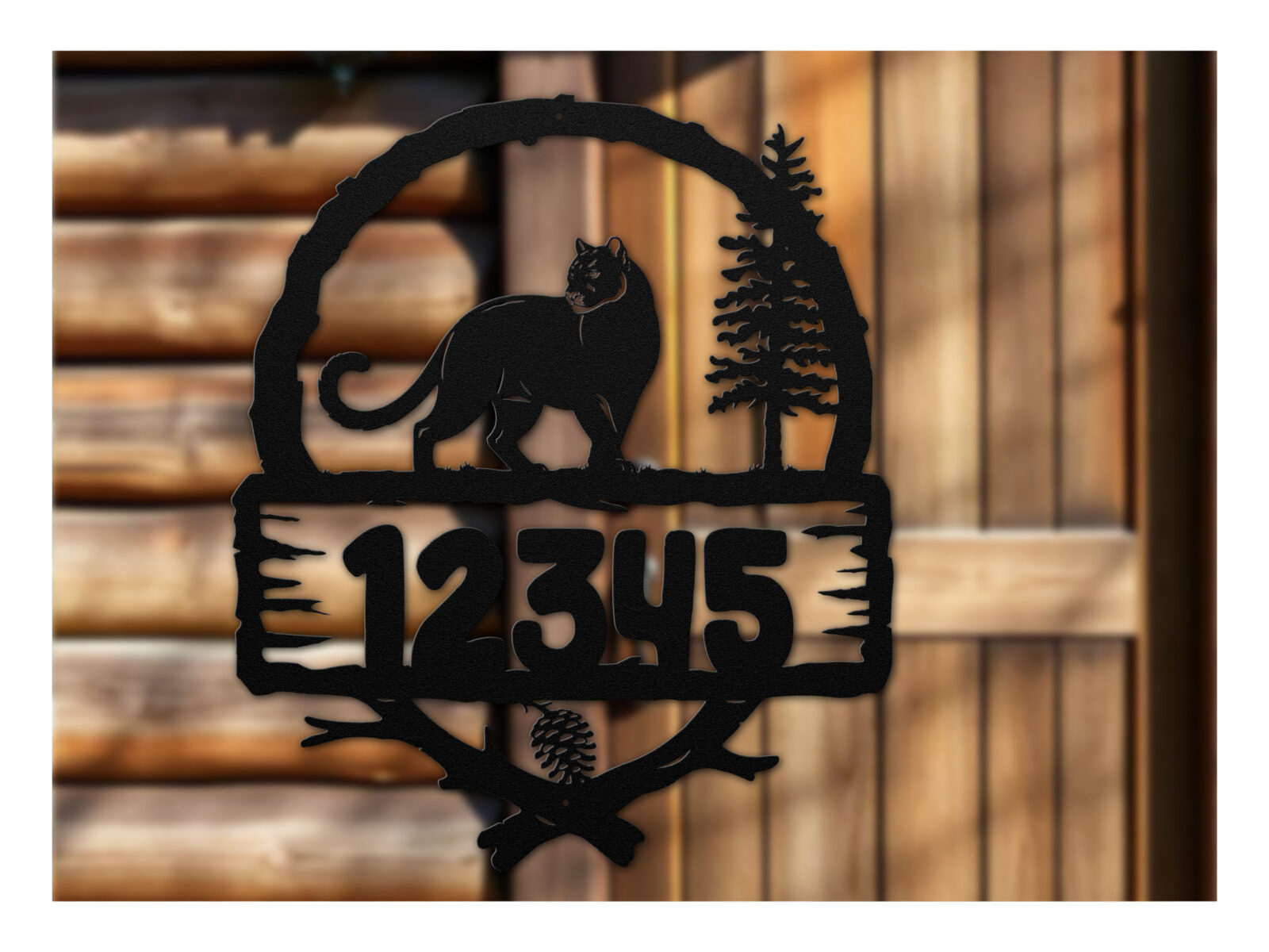 Crafted from durable 18-gauge steel and finished with a weather-resistant powder coat, this cougar address metal sign is built for year-round outdoor display. Whether mounted near a driveway, gate, porch, or entryway, it provides clear house number visibility while adding a subtle wildlife story.