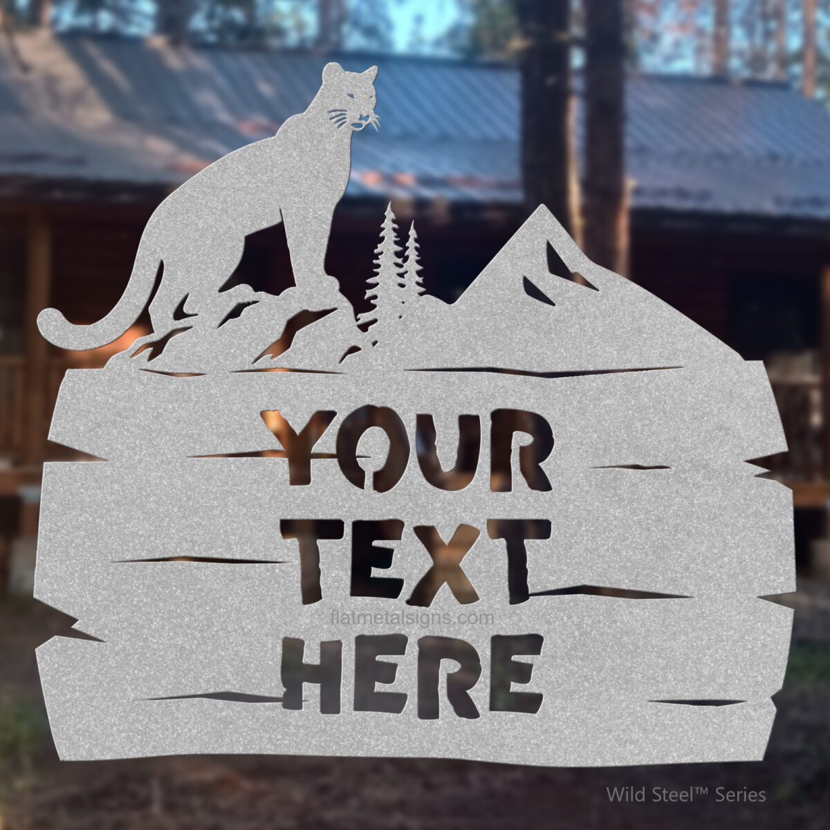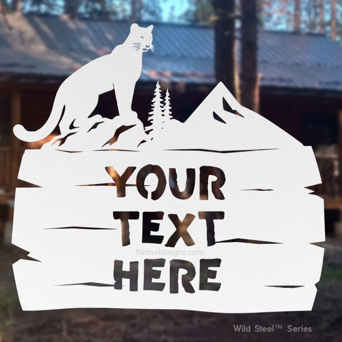 Cougar Metal Sign – Rustic Log Frame Wall Art or Yard Decor | Wild Steel Series
