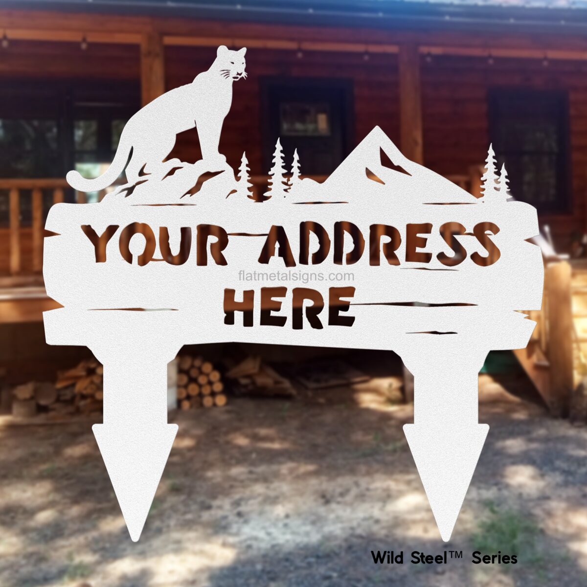 Rustic Cougar Yard Sign – Rustic Wildlife Address Marker | Wild Steel™ Series